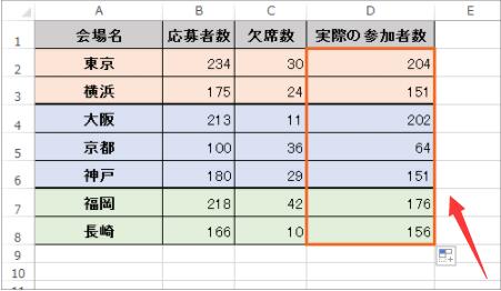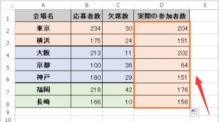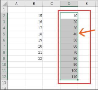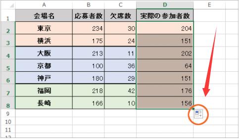 ドラッグ中に表示されている枠の中に収まった複数の図形を