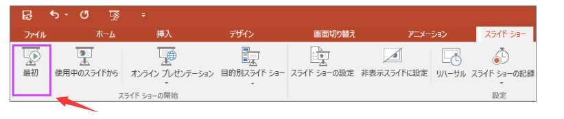 PowerPoint でスライド ショー タブに [最初から] ボタンを表示する