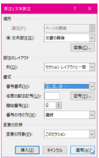 office2016 脚注番号書式を変更する