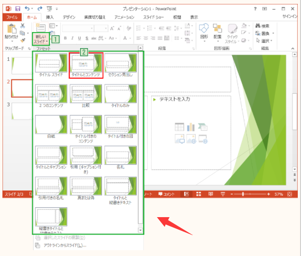 アクティブなプレゼンテーションの先頭スライドに、2つ以上プレースホルダーが存在するときに、上記のSubプロシージャを実行してください。